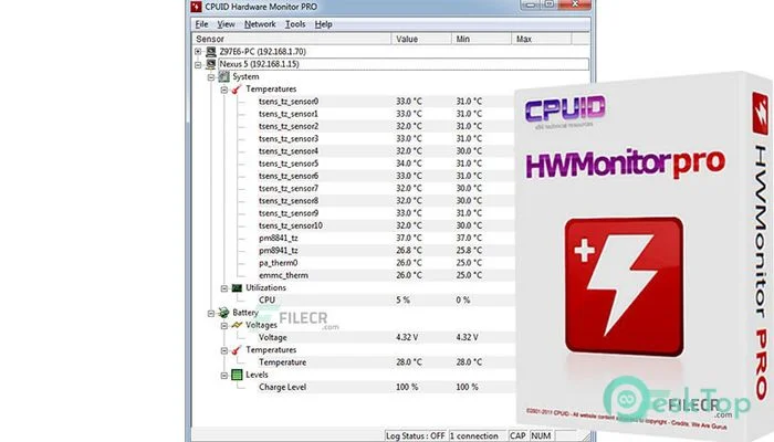 HWMonitor Pro, voltajları, aşırı sürücü sıcaklıklarını, fan hızlarını vb. okuyan temel ancak etkili bir donanım izleme aracıdır. Uzaktan izleme ve genel performansı değerlendirmek için grafikler oluşturmaya yönelik çeşitli araçlarla birlikte gelir. Windows ve Android, CPU Sıcaklık Yazılımı tarafından desteklenir.