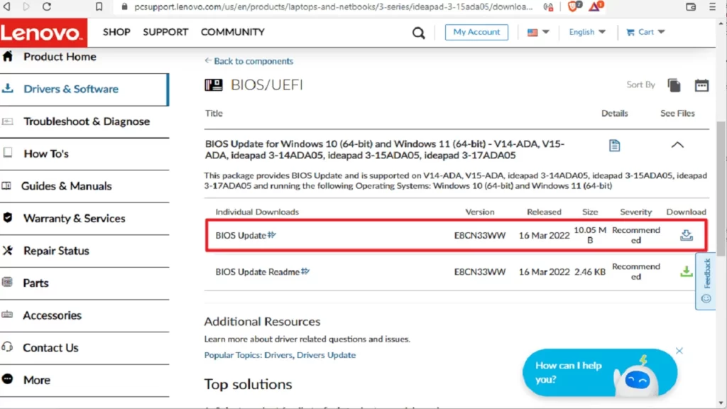 Güncellemeyi indirmek için mevcut bellenim güncellemelerini görüntülemek için BIOS/UEFI’yi seçmeleri gerekir. Güvenlik açıklarını listeleyen destek sayfası, güvenlik düzeltmelerini içeren üretici yazılımı sürümlerini listeler.