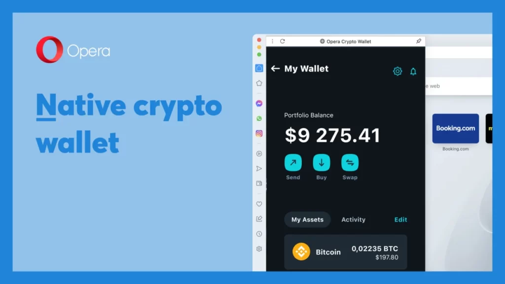 Opera Kripto Cüzdanı, yalnızca Kripto Cüzdanı olarak yeniden adlandırıldı. Kripto para birimi işlemlerini yönetmek için kullanabileceğiniz bir kenar çubuğu paneli sunar. Varsayılan olarak etkin değildir ve tarayıcının Ayarlar > Gelişmiş > Kripto Cüzdanından değiştirilebilir. Bu özelliğin bayrak ayarına Yerel Kripto Cüzdanı denir.