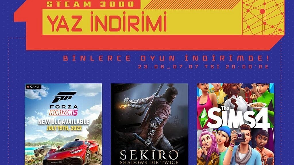 Steam, Yaz İndirimleri 2022 dahilinde binlerce oyunda indirim yapma garantisi veriyor. Açılış ekranında ise Sekiro: Shadows Die Twice, Chivalry 2, Forza Horizon 5, Hitman 3, Resident Evil Village ve The Sims 4 gibi yapımlar bizi karşılıyor.