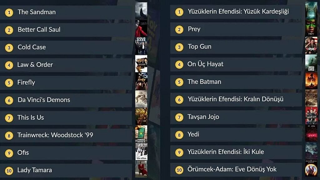 | 10 | Stranger Things 3 | 11 | 17 milyon 40 bin |